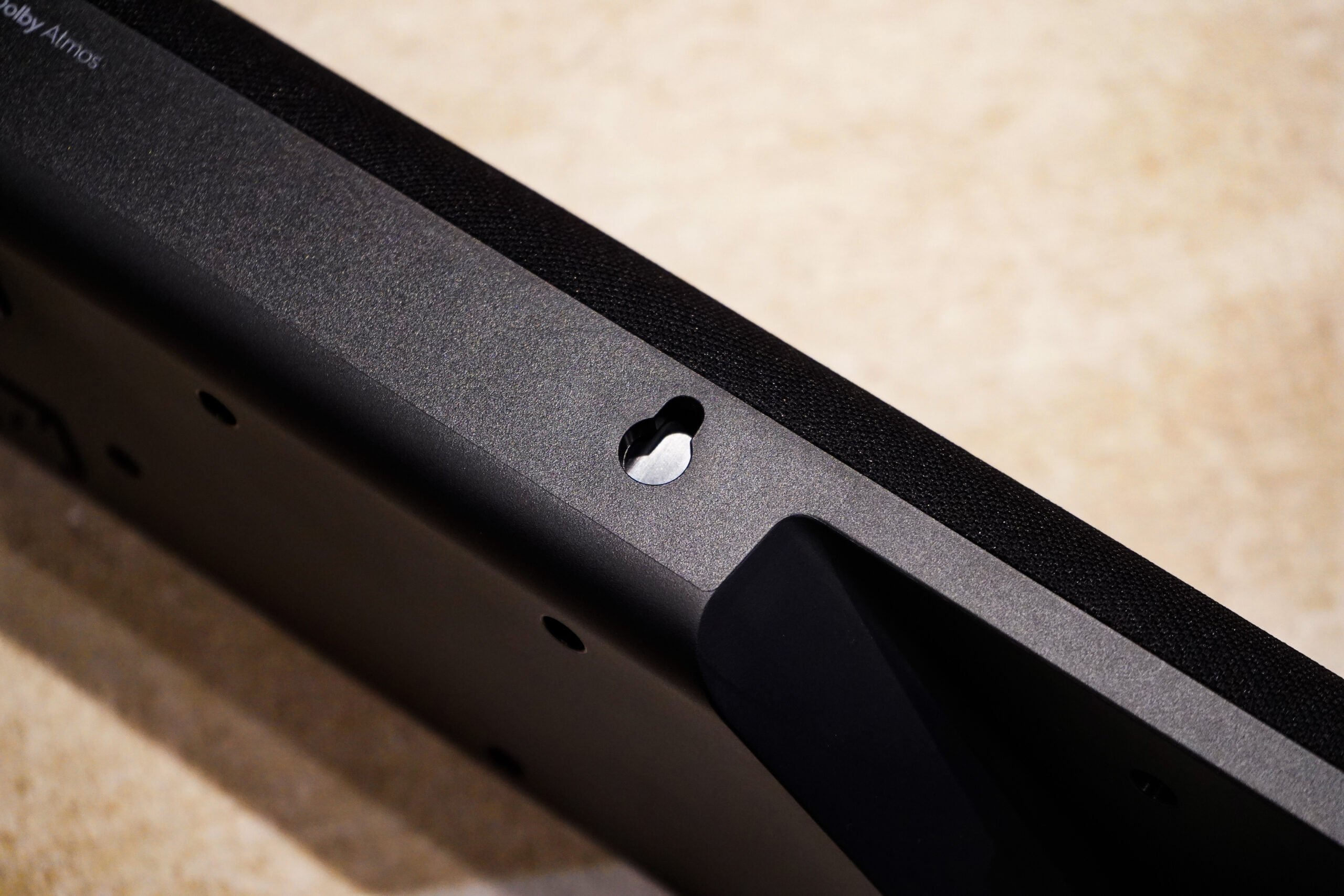 再留意一下SR-B30A的背部,可以看到它已经准备了上墙的螺丝孔,这样一来对于空间紧张、或者没有购置电视柜的用家朋友,也能透过上墙的方式摆放SR-B30A,倾听真实之声。