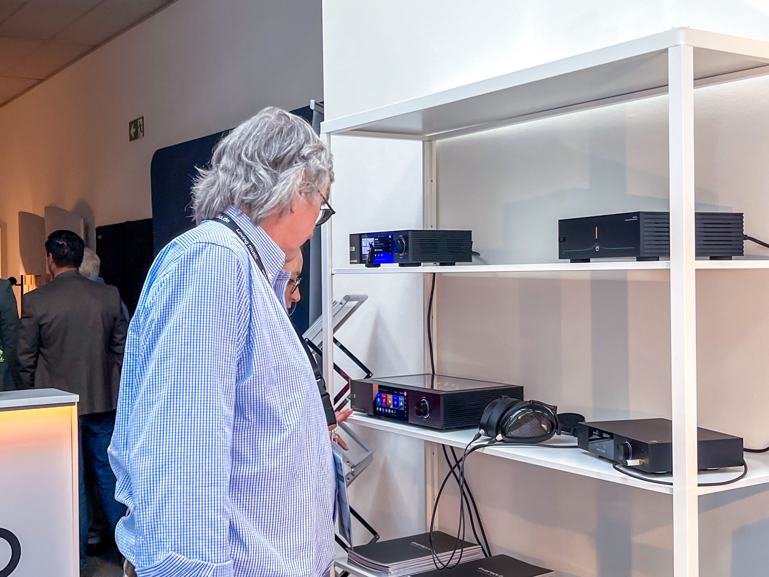 媒体正在查看艾索洛演示设备(左上DMP-A6、右上AMP-F2、左下DMP-A8、右下DAC-Z8)