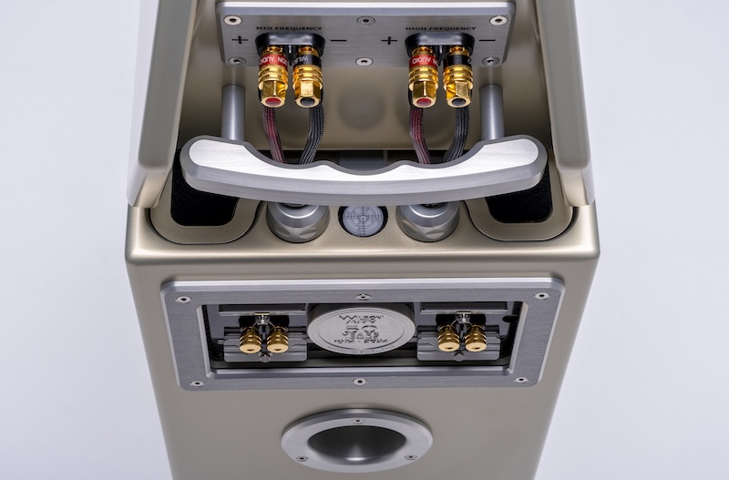 在分音器部分,Wilson Audio 采用制作难度相当高的手工搭棚,因为他们认为 PCB 板会对声音带来不良影响,而且为了拥有最好的电容,Wilson Audio 干脆自己手工制造,称之为 AudioCapX-WA,重点在于电容规格的误差极小,让音箱在小声聆听时,依然维持绝佳的解析力。