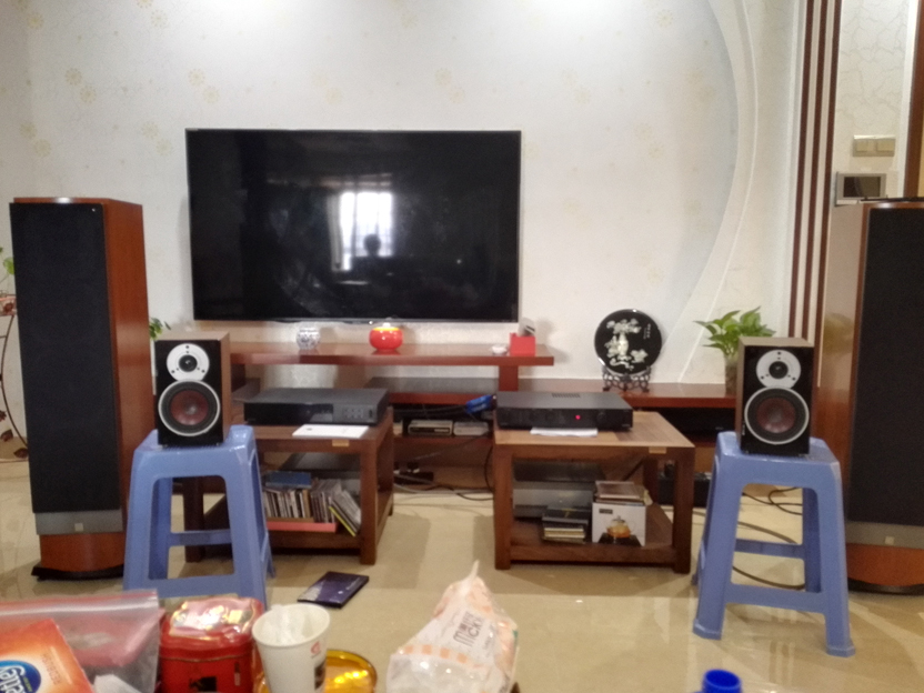 超:音响性是为音乐性服务的,追求片面的播放或效果都不利我们对音乐的完整理解,是不是。你也算是本地爱好者第一个买达尼品牌的落地箱,第一个"吃螃蟹",勇气可嘉加上运气好。慢慢就会体会、领略出落地箱与书架箱的差异,适用不同的听音环境、不同音乐内容。这是第一。
