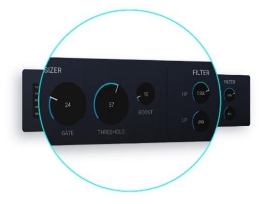 MIYA 的内部门控提供增强的输入讯号控制,让使用者能消除背景噪音等较轻的声音,也能加强原始信号的节奏感。此外,还可以根据最初检测到的小波形振幅加强加法合成器生成的讯号。